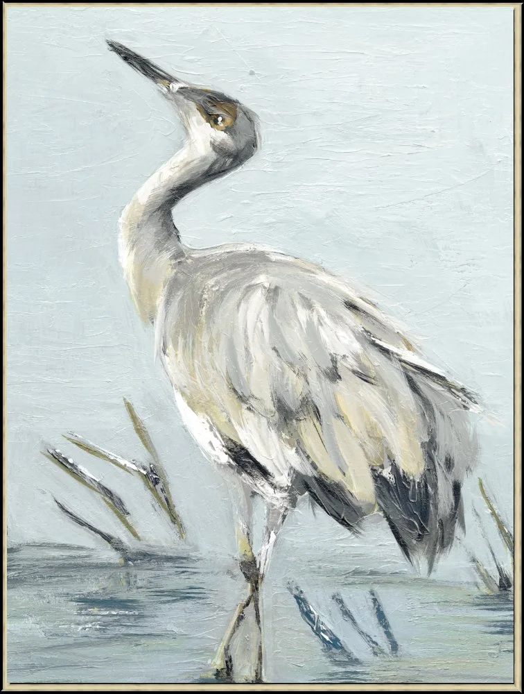 Natures gentle beauty. Great Blue Heron resting on a driftwood shore. Beautiful composition of a heron in a natural setting will easily become the focal point of any room.