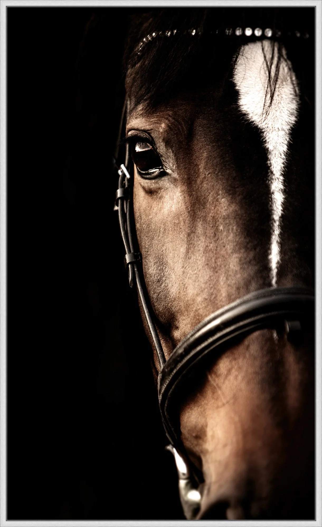 A perfect balance of strength and beauty, this horse photograph captivates with its refined composition. Encased in a thin silver floater frame, it brings sophistication and charm to both modern and traditional spaces.